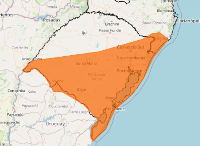 O alerta não é válido para todo o território gaúcho. Essas chuvas devem atingir todo o estado, com exceção do Norte e do Noroeste (confira no mapa abaixo).