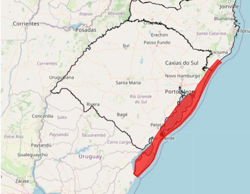 O INMET (Instituto Nacional de Meteorologia) elevou para vermelho o alerta de ventos na faixa litorânea do Rio Grande do Sul. O motivo é o avanço do ciclone extratropical para o oceano.