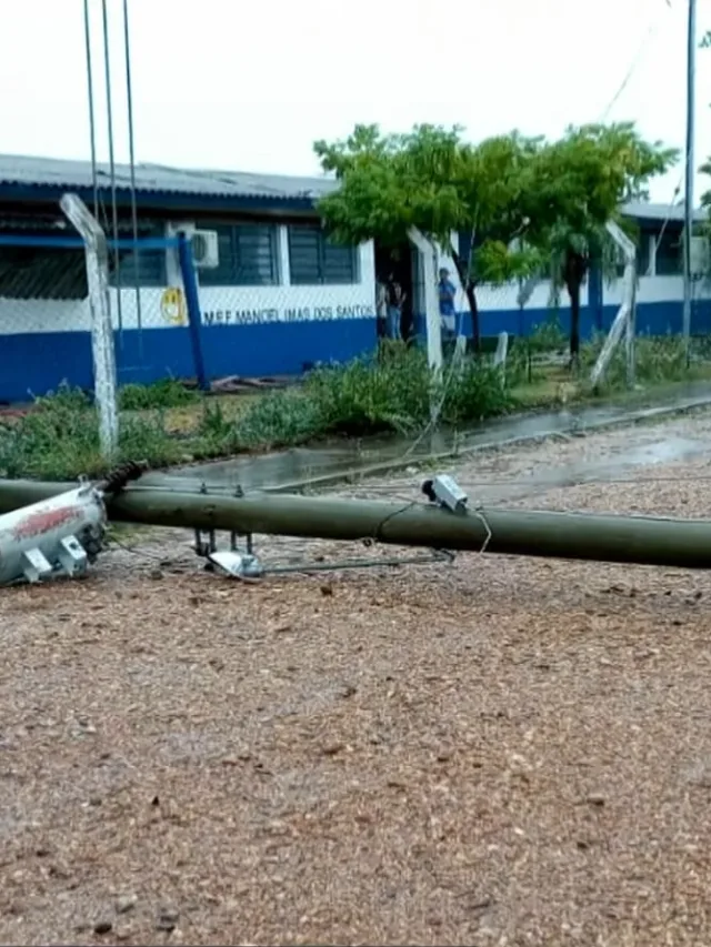 Em Barra do Quaraí, um poste de energia caiu e danificou parte da cobertura da Escola Municipal Manoel Imãs dos Santos. O município segue sem energia elétrica, e a Defesa Civil orientou a população a contatar a concessionária responsável pelo reestabelecimento do serviço.