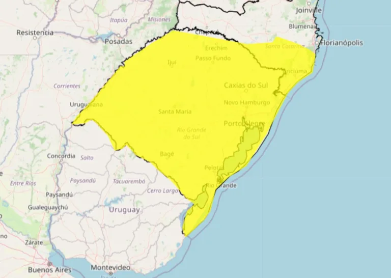 O alerta é válido para o território gaúcho. Confira no mapa abaixo.