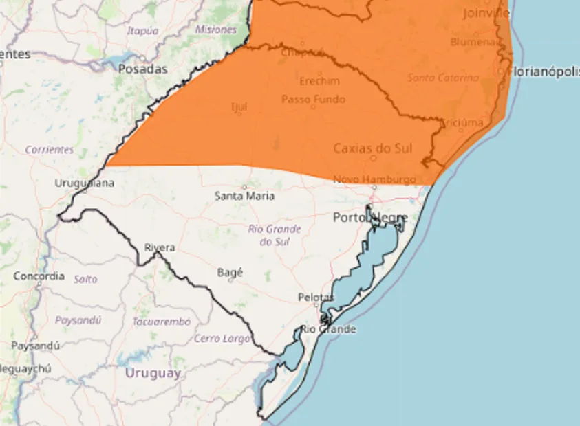 O alerta não abrange todo o território gaúcho. Essa chuva deve atingir Fronteira Oeste, Norte, Noroeste, Nordeste, Centro-Norte, Serra, Vales e Litoral Norte (Confira no mapa abaixo).
