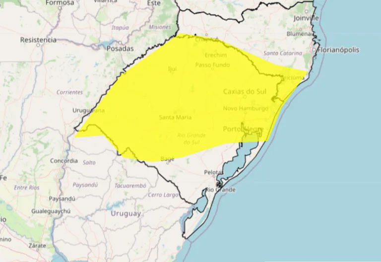O Inmet (Instituto Nacional de Meteorologia) publicou um alerta de tempestade para o território do Rio Grande do Sul. O alerta amarelo abrange quase todo o Estado e possui validade até a manhã de segunda-feira (26).