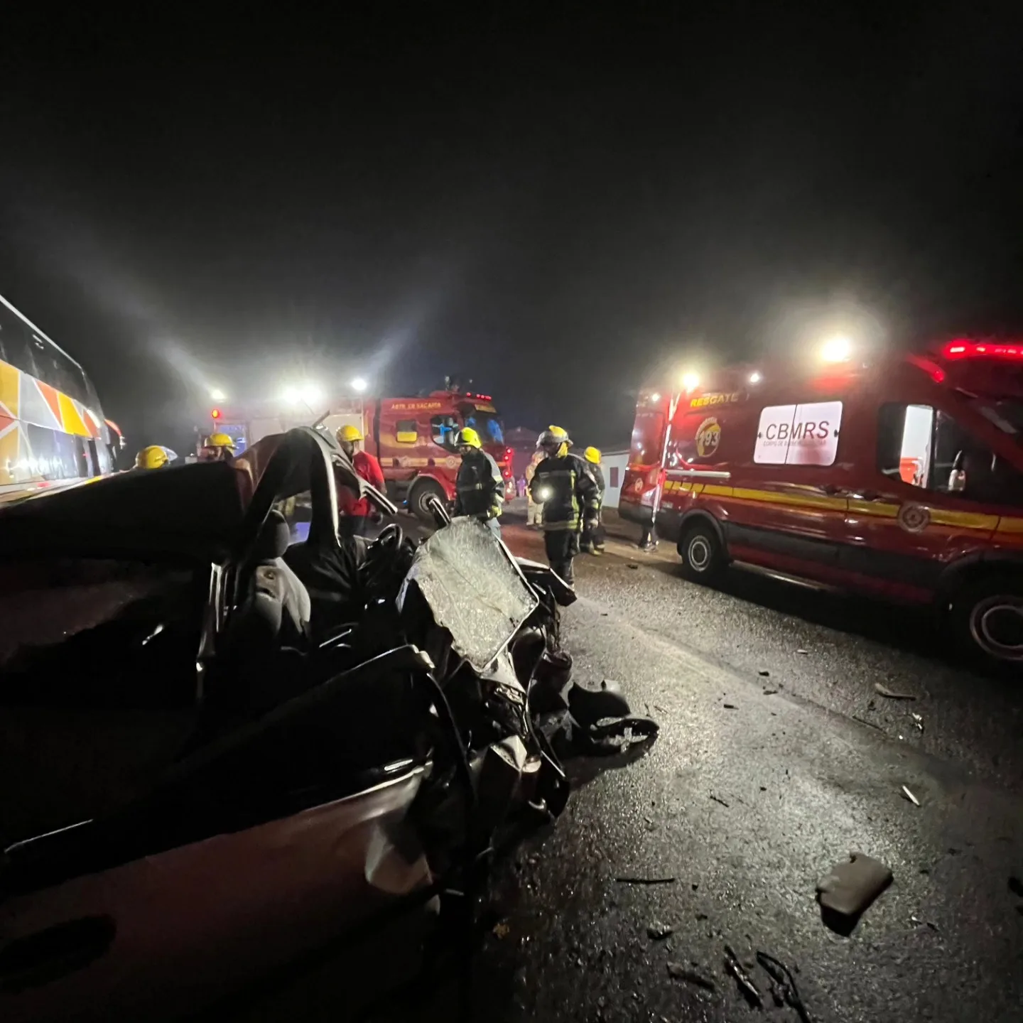 Conforme o Corpo de Bombeiros, o ônibus seguia de Salta, na Argentina, e tinha como destino a Camboriú, em Santa Catarina. A condutora do automóvel, uma jovem de 23 anos, morreu no local.