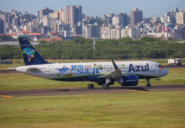 A aeronave Airbus A320 matrícula PR-YSN, chamada de “Azulando o Brasil”, recebeu uma pintura especial para comemorar a retomada das operações.