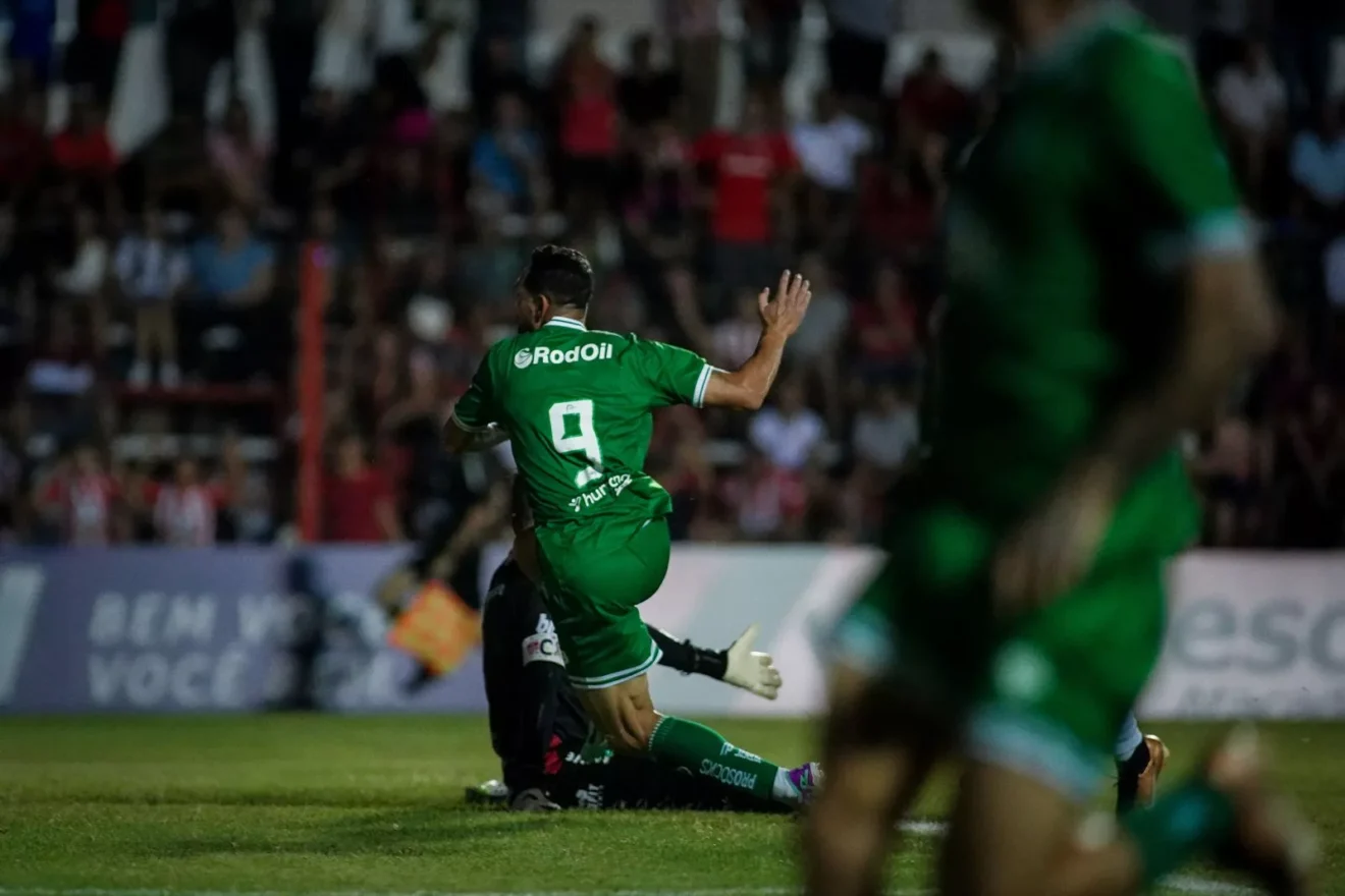 Depois, aos 20, Jean Carlos fez um golaço. João Lucas cobrou uma lateral dentro da área, a bola foi espirrada e chegou meia do alviverde chutar de voleio para o gol.