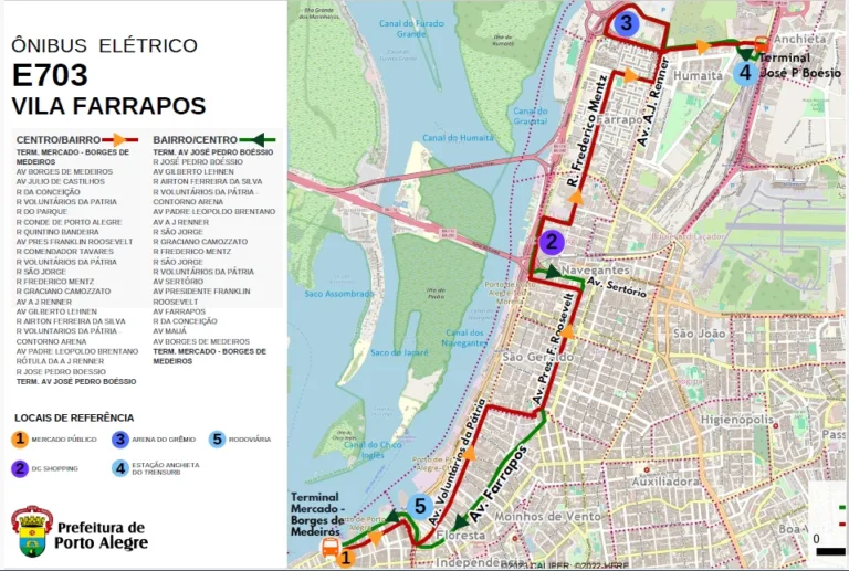 A E703 Vila Farrapos vai operar 32 viagens diárias, com quatro ônibus, em trajeto entre os terminais Mercado (Centro Histórico) e o da avenida José Pedro Boéssio, junto à estação Anchieta do Trensurb, passando pelos bairros Farrapos e Humaitá, na região da Arena.