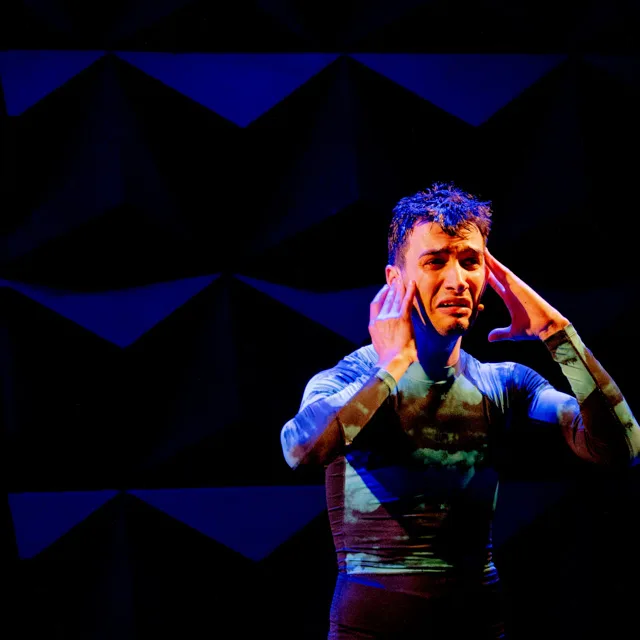 Azul Marítimo é o primeiro solo teatral de Victor Di Marco que tem como mote seus medos e fascínios pelo mar. Essas sensações deságuam em dança onde palavras falsas e retas contrastam com a imprevisibilidade do movimento das ondas. Entre tropeços, tremores e desequilíbrios, o ator revela uma narrativa delirante que nunca foi e nunca será firme e concreta.