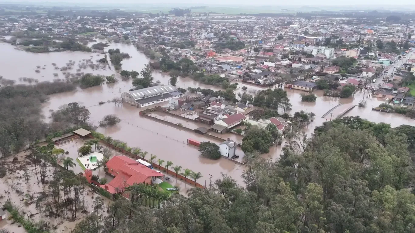 São Lourenço do Sul decretou situação de calamidade pública neste sábado (23) após o transbordamento do Arroio São Lourenço atingir ruas e residências da zona urbana. Em menos de dois dias, a precipitação acumulada na região chegou a 300 milímetros, volume quase três vezes superior à média histórica para o mês de agosto.