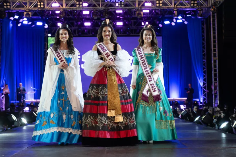 A 35ª Festa Nacional da Uva, que será realizada em 2026, já tem sua nova corte. Em cerimônia realizada na noite de sábado (23), no Ginásio do SESI, em Caxias do Sul, foi escolhida a Rainha: Elisa dos Santos Pereira D’Mutti, do SER Caxias e Vinhedos Papeis. Ela será acompanhada pelas Princesas Júlia Dalegrave Scopel, do Recreio da Juventude, e Letícia Comin da Silva, da CDL Caxias, Sindilojas e Sindigêneros.
